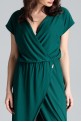 Długa sukienka z kimonowym rękawem , w pasie z gumką. Fason górą i dołem przekładany na prawą stronę. Z przodu rozcięcie dodające szyku i elegancji. Model świetnie sprawdzi się na wiele okazji.