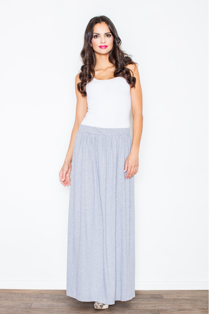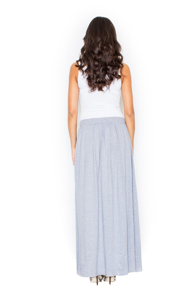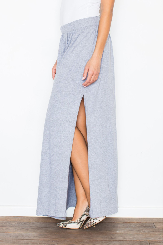 Cotton maxi skirt with a long slit at the side. It has elastic waist and slight gathering at the top. It’s perfect for the summer, the slit shows off the leg nicely.
